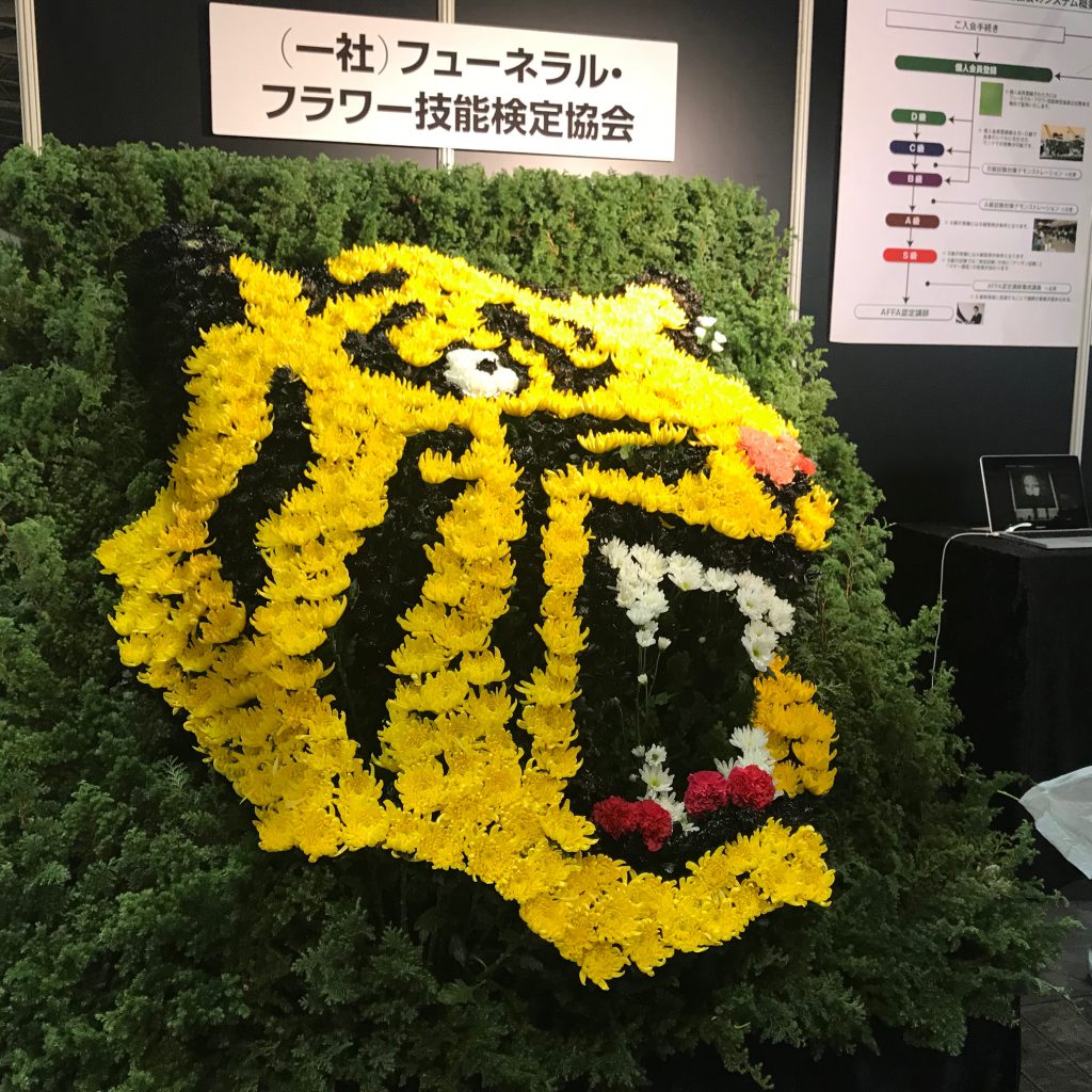 これは祭壇のお花。関西ですからね、さすがに「阪神タイガース」でした。