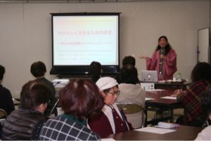 講演では、基本的にはプロジェクターを使って写真やイラストを見ていただきながら、笑顔で聞いていただける内容を心がけております。