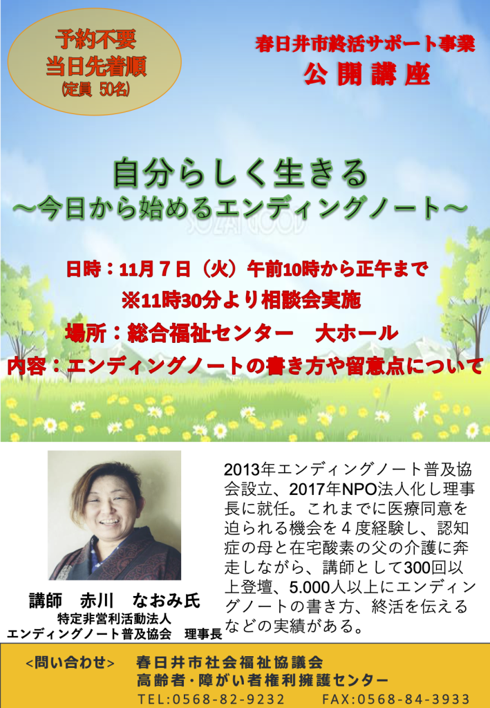 演題:自分らしく生きる〜今日から始めるエンディングノート〜