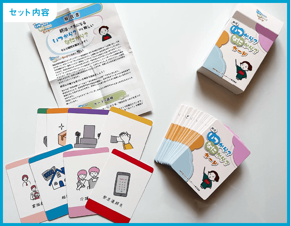 そこで「きっかけがみつからないから始めることができない」という多くの人の課題を解決するために「終活いつから?なにから?カード」を制作しました。